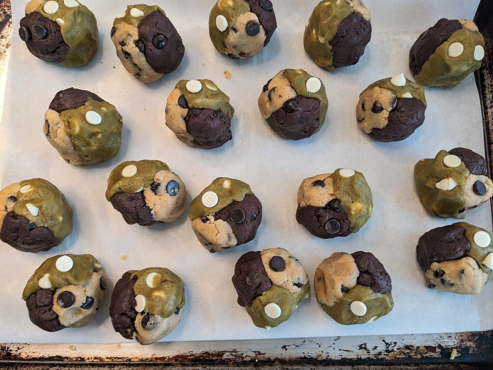 My first attempt was done after chilling the cookies. The matcha spread a lot quicker than the other ones so they were pretty deformed. Then I decided to allow the cookies to sit a room temperature for about 20 minutes to warm up which allowed the cookies spread evenly.