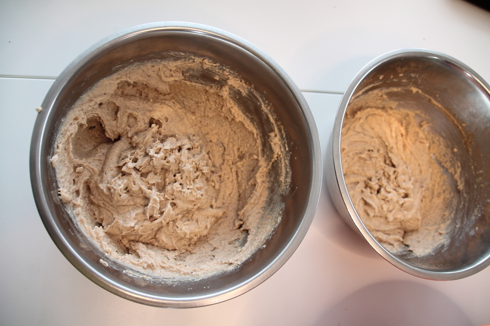 For the double chocolate, add cocoa powder to the flour to get a nice dark chocolate base.