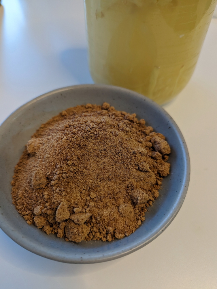 For my first attempt, I used 6 tbsp of coconut sugar, 1/4 cup of ginger bug, 4 tbsp of grated ginger and about 3 cups of water.