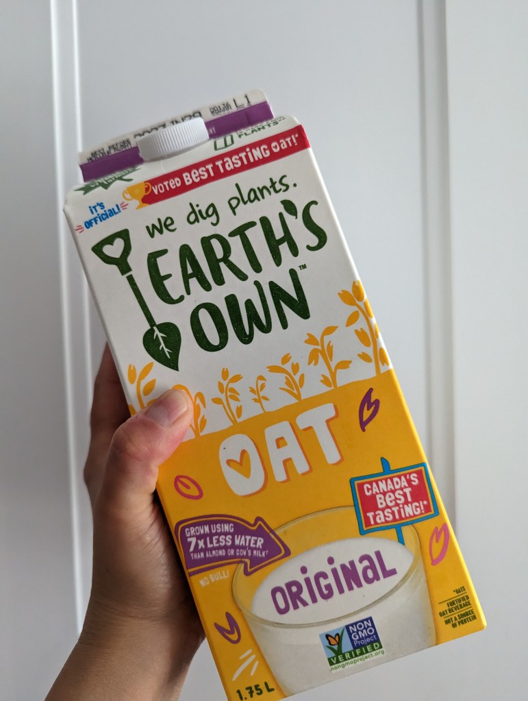 - Put the remaining oat milk (1/2 cup in total) into a measuring cup, along with 1/4 cup olive oil, and 1 tsp vanilla extract.