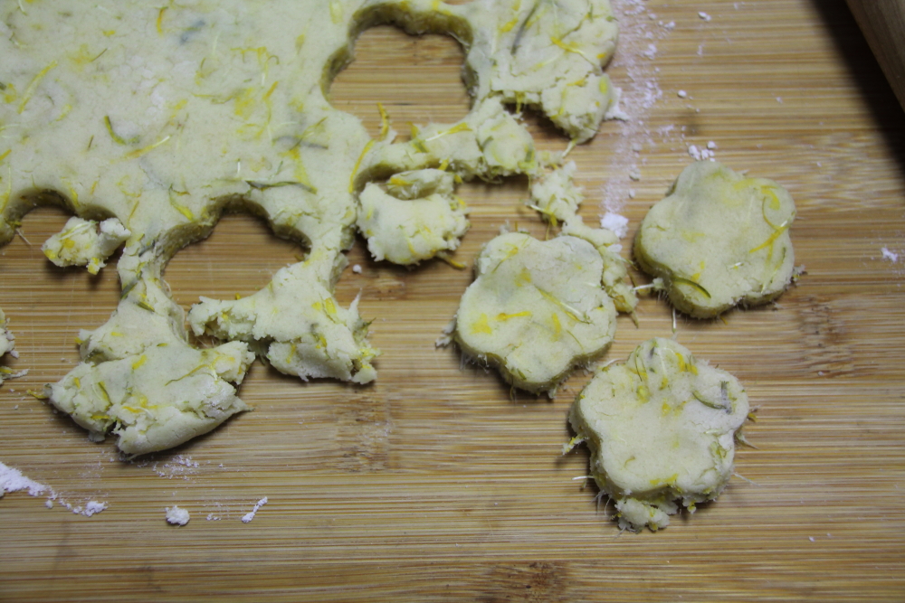 Roll out the dough with a rolling pin and cut out shapes. I used a flower cookie cutter.