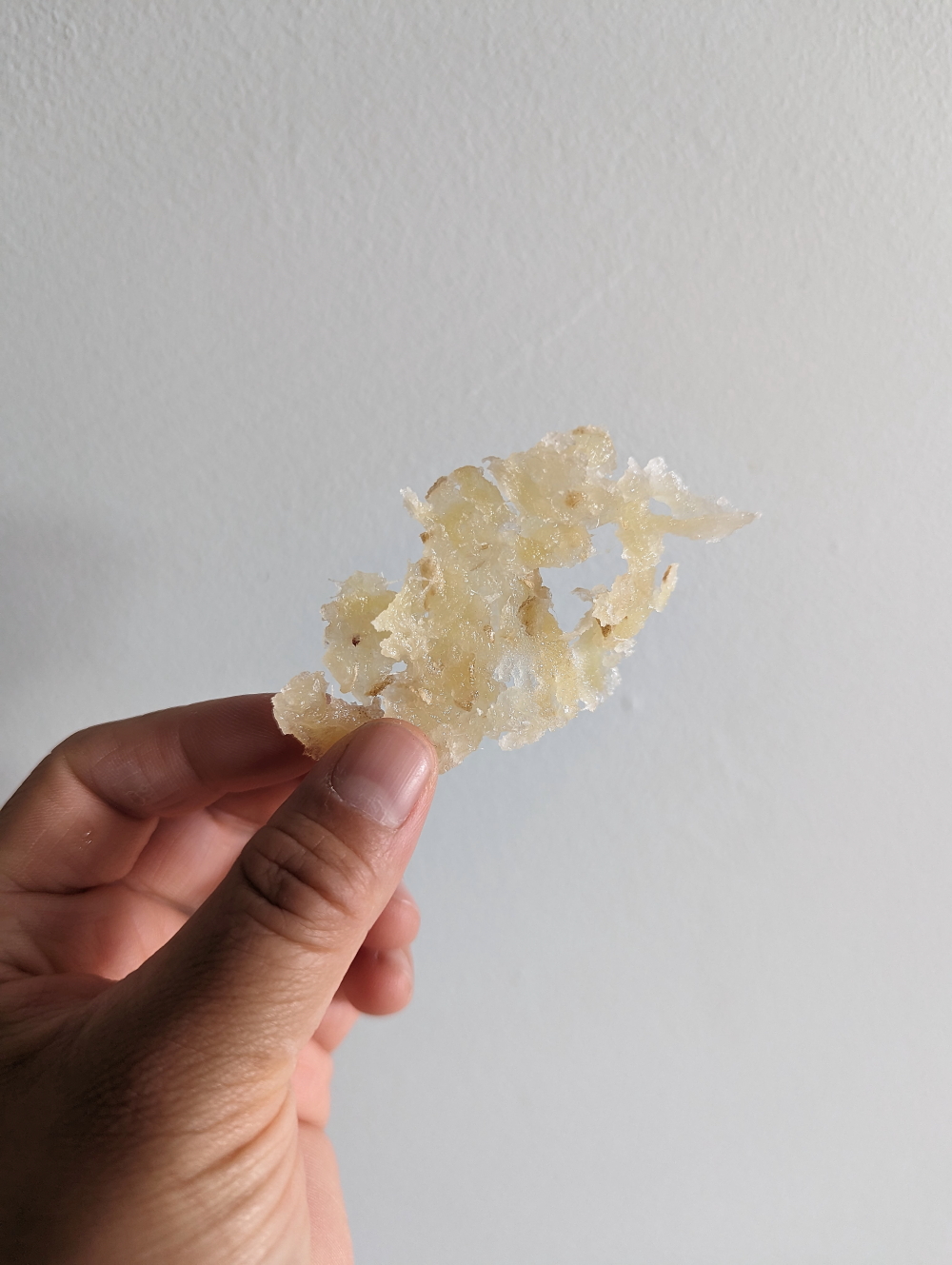The liquid from the ginger will start dissolving the sugar. Spread the sugary ginger on a non stick sheet, waxed paper or plastic wrap. You want to make sure it is non stick to make it easier to flip over.