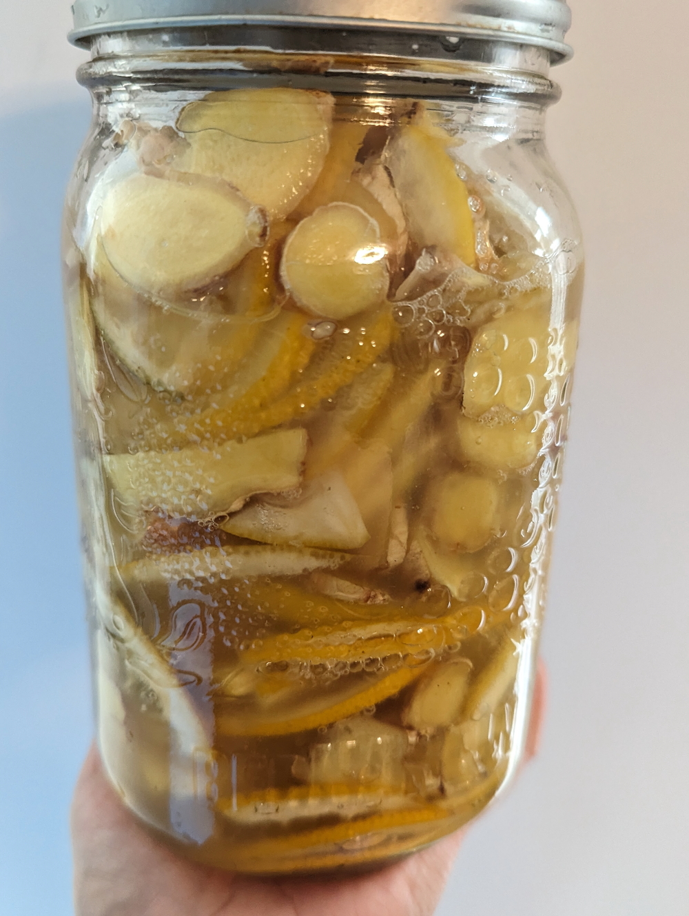 I mixed my honey lemon ginger mixture and then store in the fridge to slow the fermentation.
