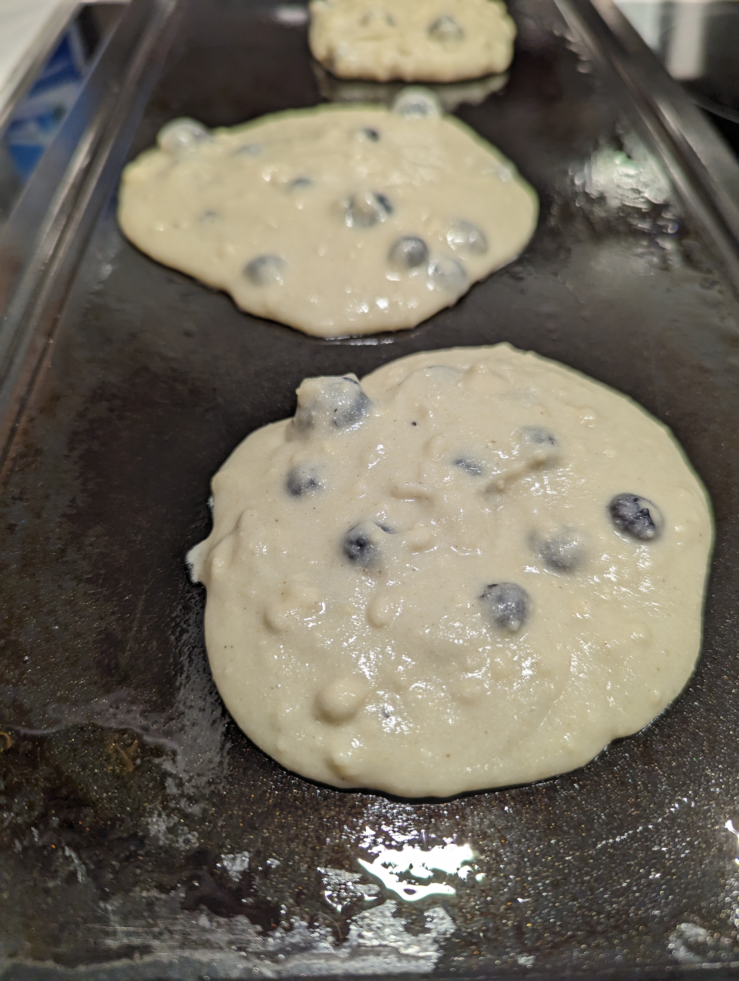 On a hot griddle or frying pan, cook your pancakes until they are golden brown.