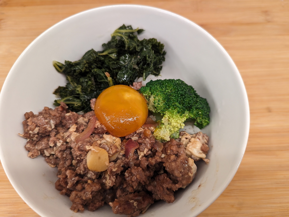 The egg yolks floated up so most of the soya sauce sat at the bottom of the dish.