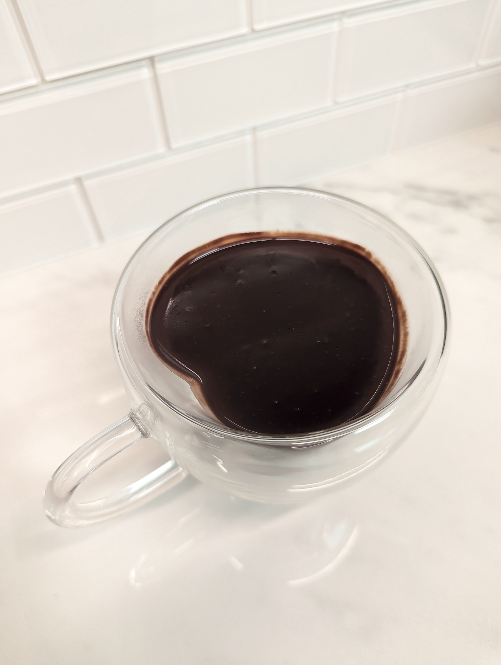 Pour into cups and top with whipping cream if you wish, or just enjoy as is. This is a thick and rich hot chocolate so you only need a small cup. You can adjust the sweetness and amount of milk if you prefer your hot chocolate to be sweeter and a little runnier.