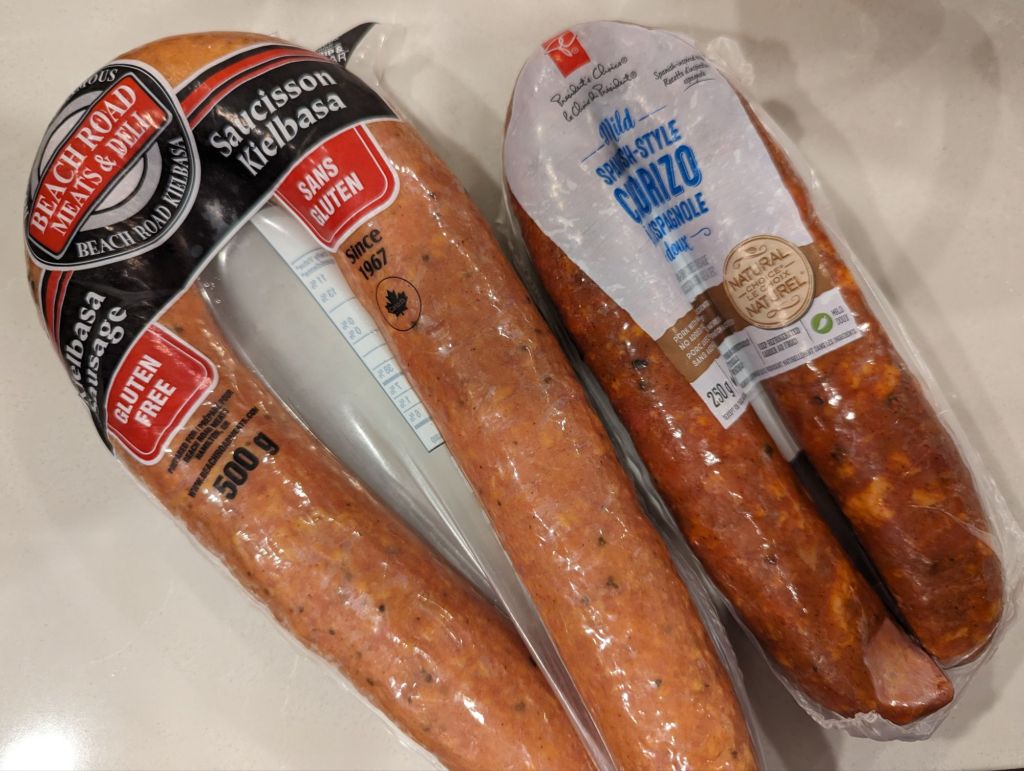 Slice the sausages and slightly sear the ribs. Put everything in the instant pot and cook for 2 hours.