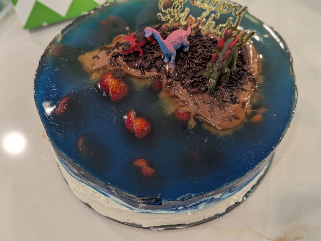 For my kid’s third birthday, I wanted to make a dinosaur themed birthday cake. I have seen these Jello Cheesecake that looked like oceans. I wanted tor recreate one but with a Jurassic Park island. I decided to give it a shot.