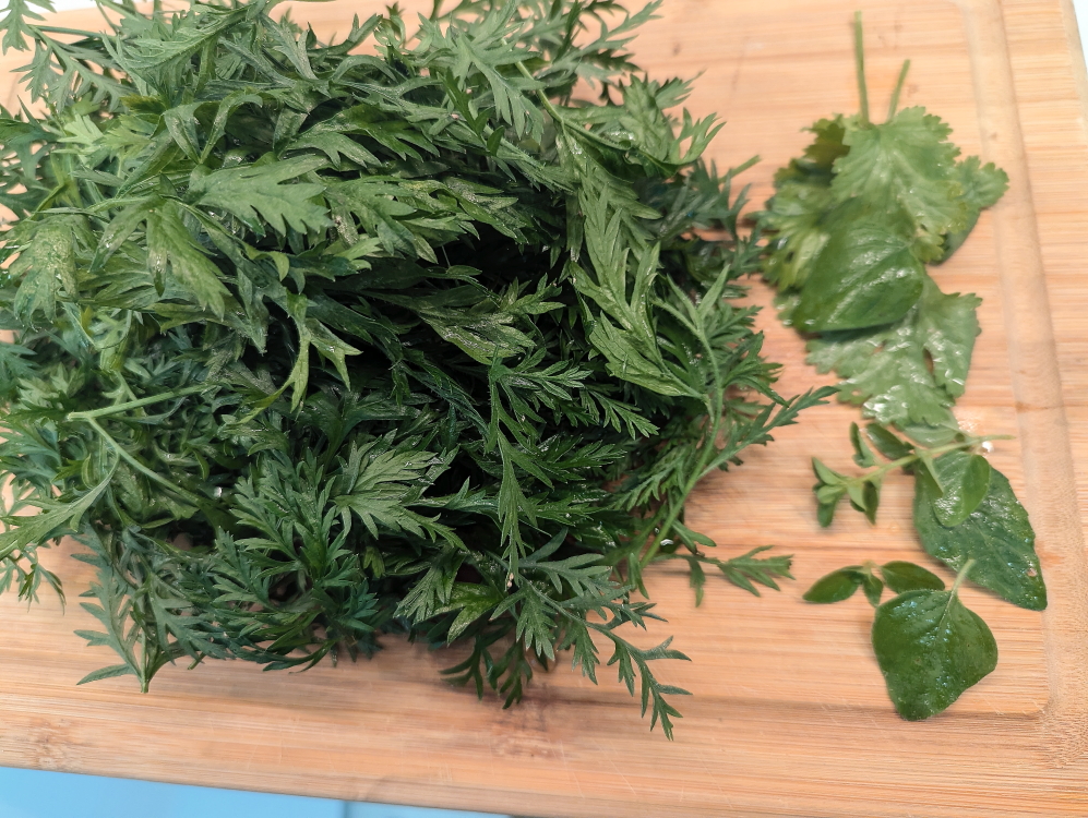 To use up these greens, I decided to make a chimichurri like sauce since I didn’t have the ingredients for pesto. Wash and clean the carrot tops. Remove the stems. You will also need some herbs like cilantro, and oregano.