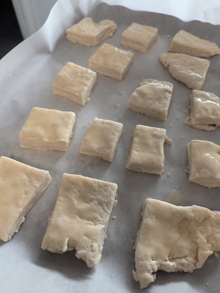 Place on a tray and butter the tops of each biscuit.