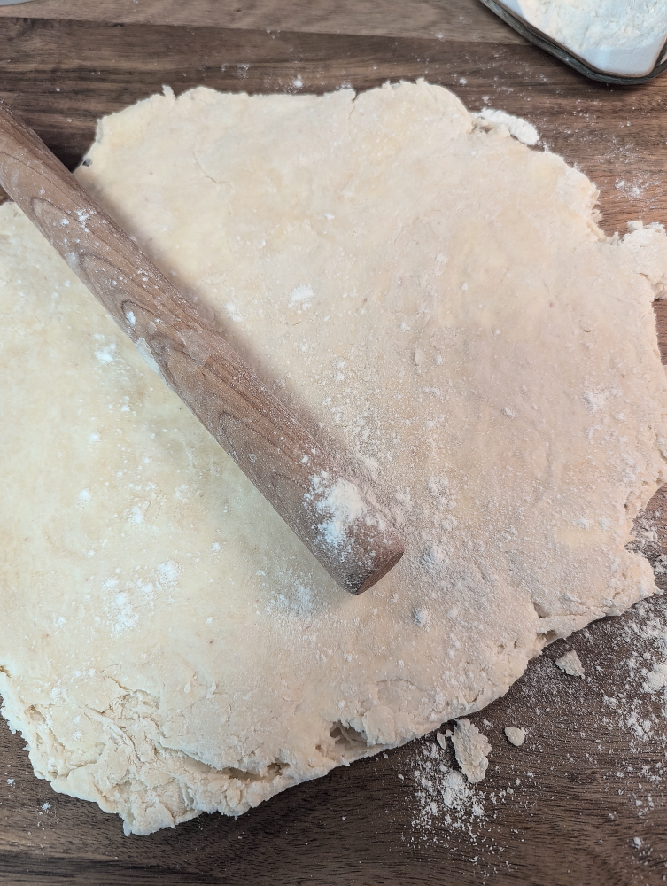 Roll the dough out until it is 1 inch thick.