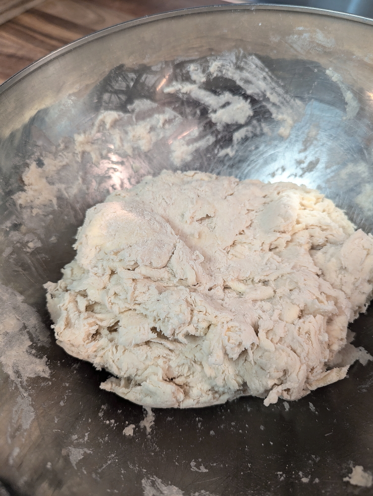 Mix until you get a shaggy dough. You will still see chunks of butter.