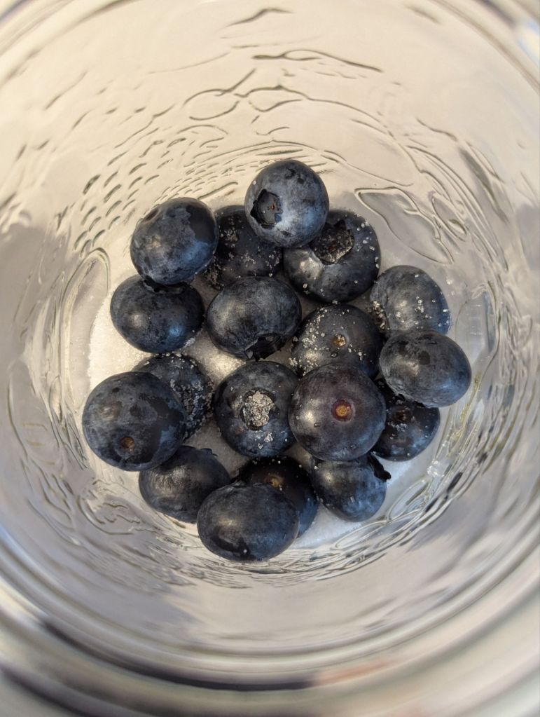 - Cover the blueberries with additional white sugar until it covers them half way.