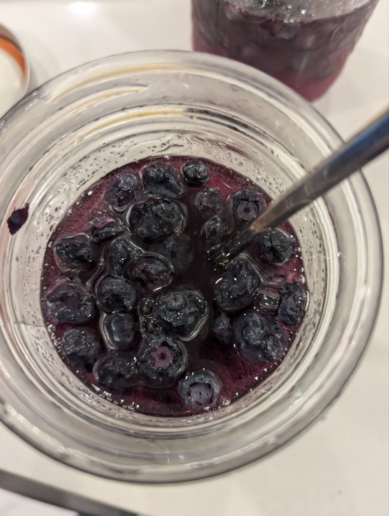Seal the jar and place in the fridge. Over the next couple of weeks, the blueberry juices will get pulled from the blueberries and create a flavourful blueberry syrup.