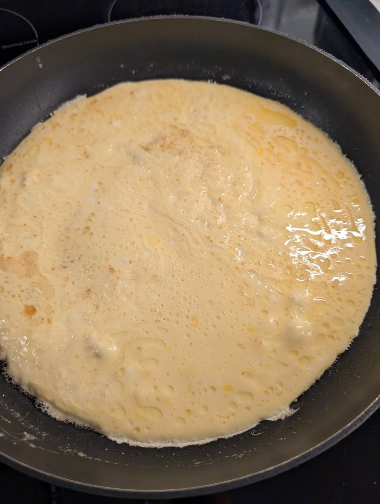 To make this recipe you need to add milk and flour to your eggs and cook as normal.