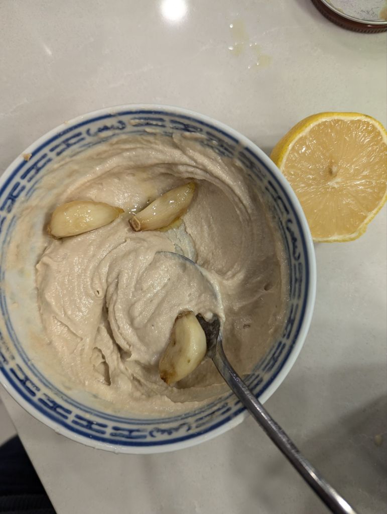- Blend the tahini mixture and eggplant until smooth. Add more salt if needed.