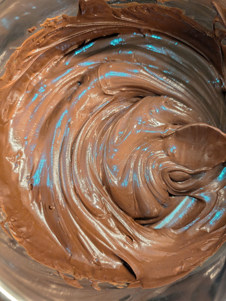 When the chocolate chips are fully melted allow to cool slightly before mixing in the rest of the ingredients.