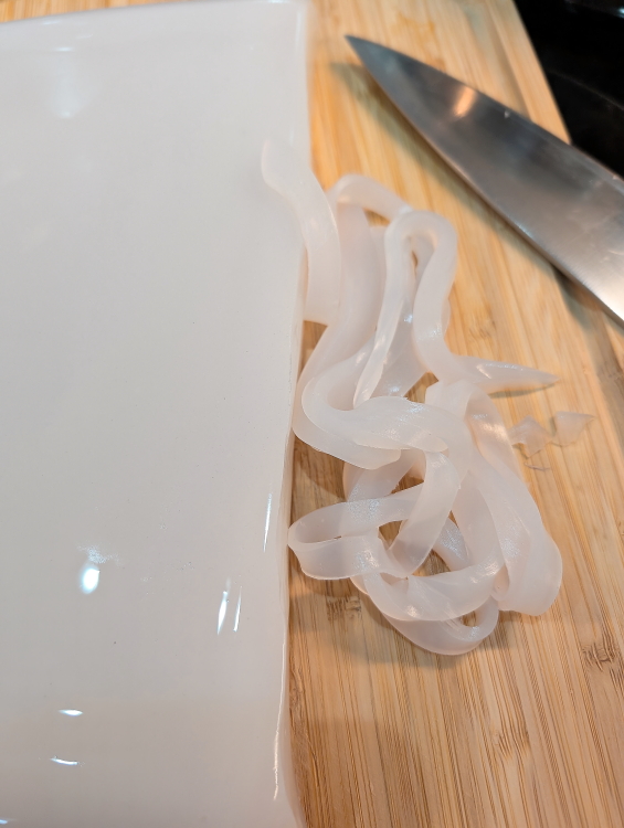 Once cooled slice the jelly into long strips. This part took the longest.