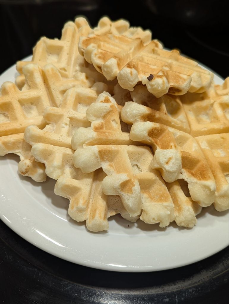 I love making waffles for the weekend. They are easy, quick and can be saved in the freezer for weekday breakfast. This version of waffles uses sweet rice flour or mochiko to make a chewy gluten free version.