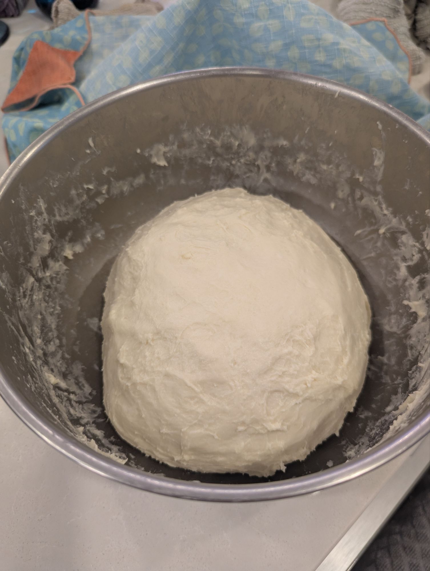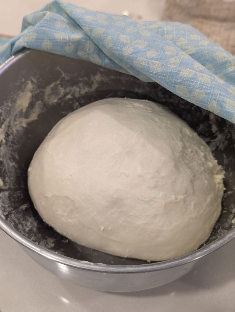 - Do a last stretch and fold for a minute. Cover with a cloth and let it sit for 5-6 hours at room temperature until it has doubled in size.